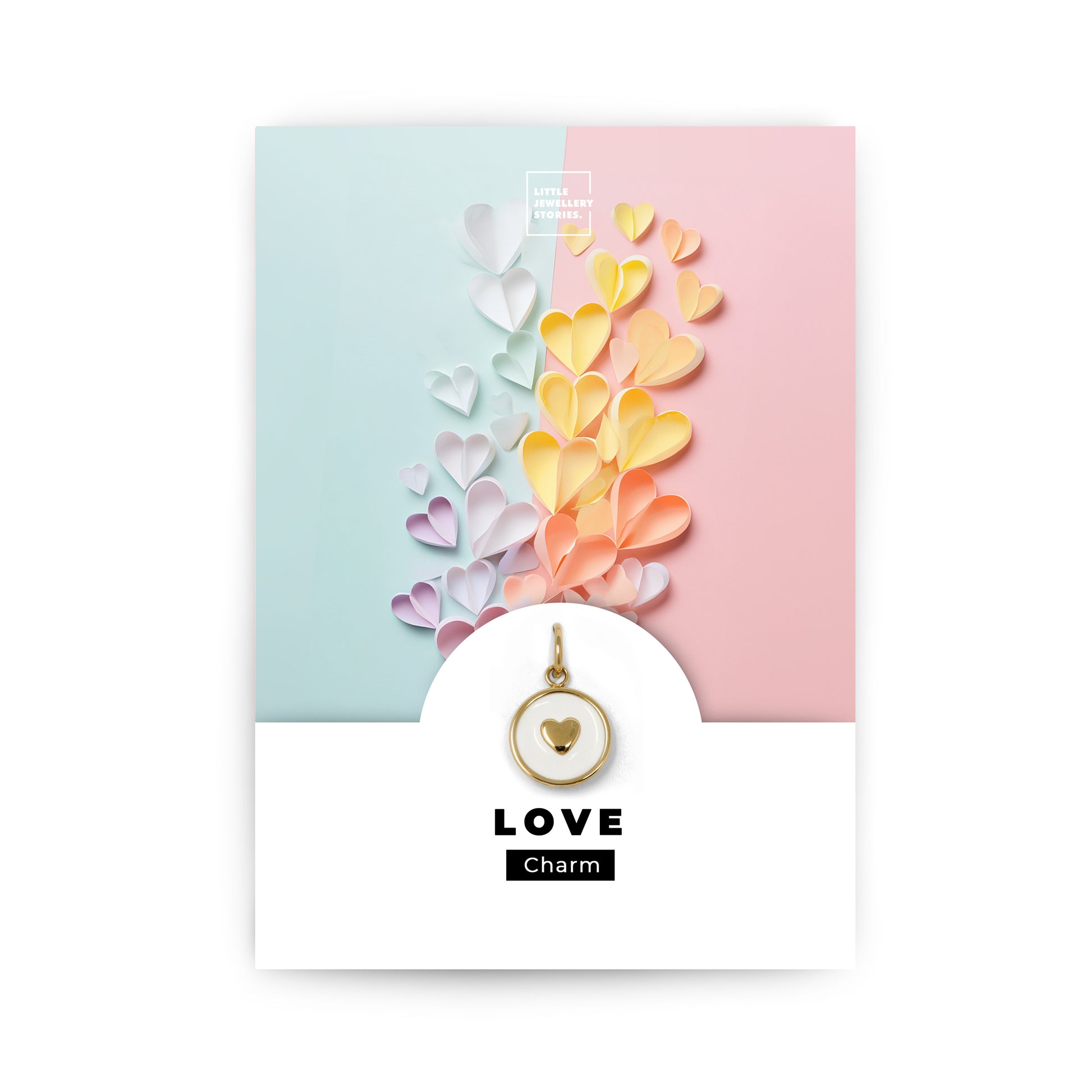Hochwertige Charms aus 316L Premium Edelstahl und mit 18K Vergoldung auf einer liebevoll gestalteten Karte; inklusive Geschenkbox.
