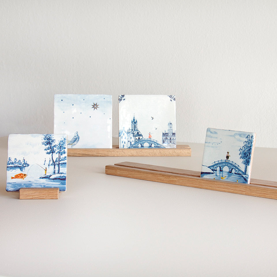 In dem Familien-Halter aus rohem Naturholz kannst du deine „Fliesenfamilie“ nebeneinander platzieren. Bis zu 3 Fliesen in der Größe S finden darin Platz.