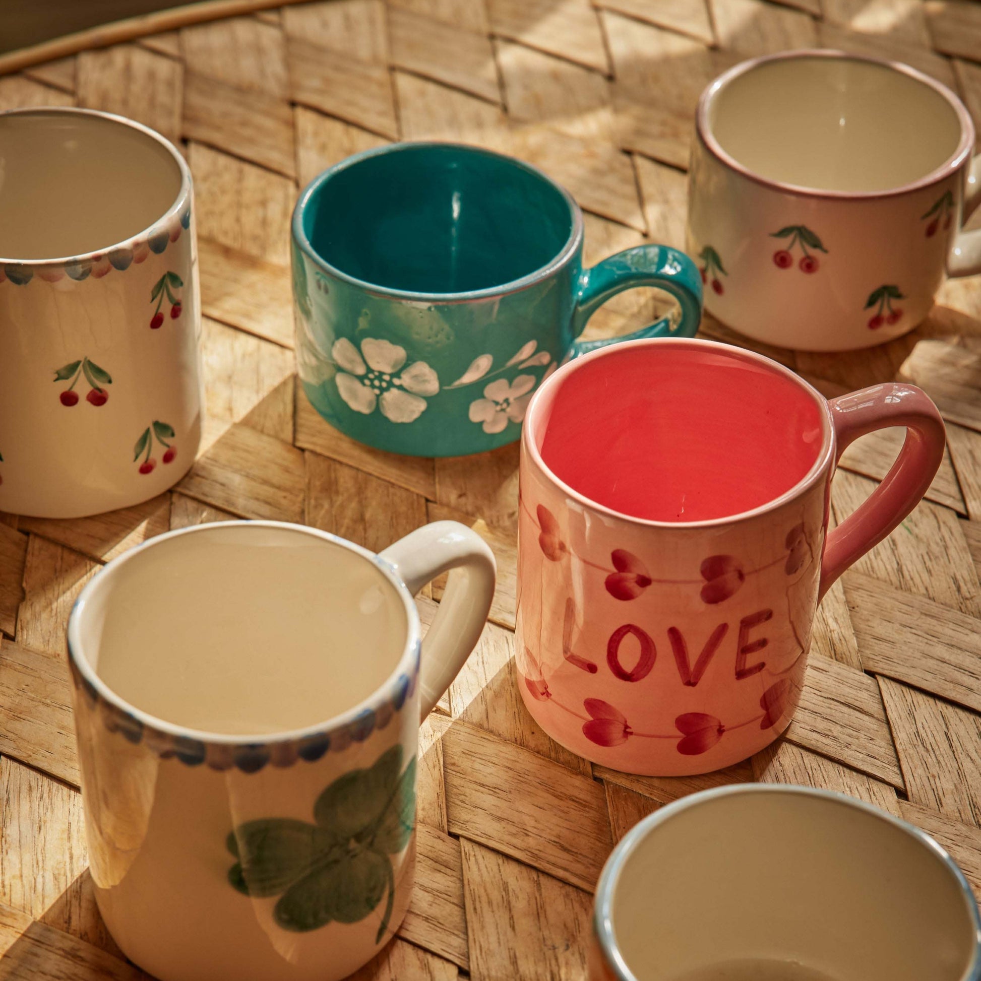 Wunderschöner Henkelbecher aus Keramik mit verschiedenen, handgemalten Motiven. Jeder Becher wird von einer Gruppe toller portugiesischer Frauen handbemalt, was ihn zu einem echten Unikat macht.