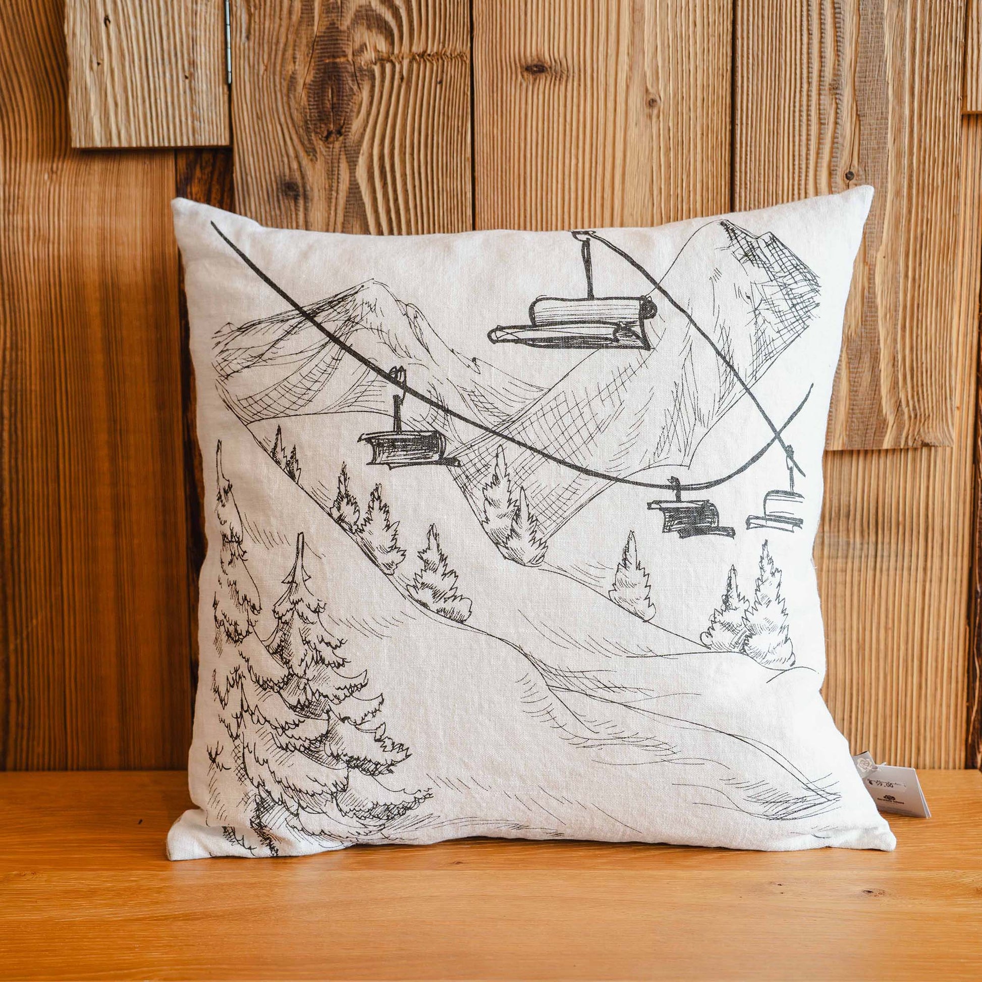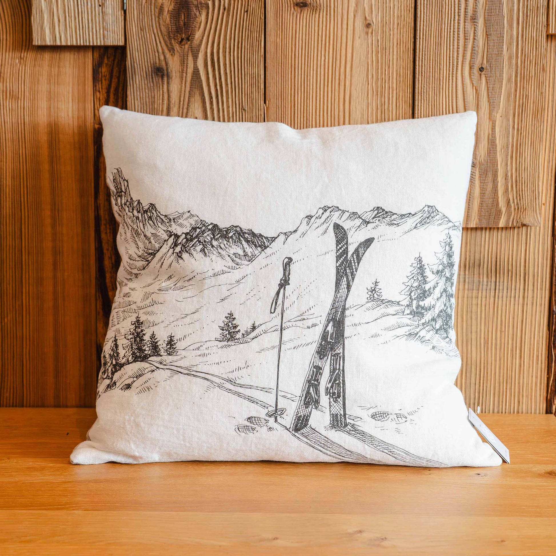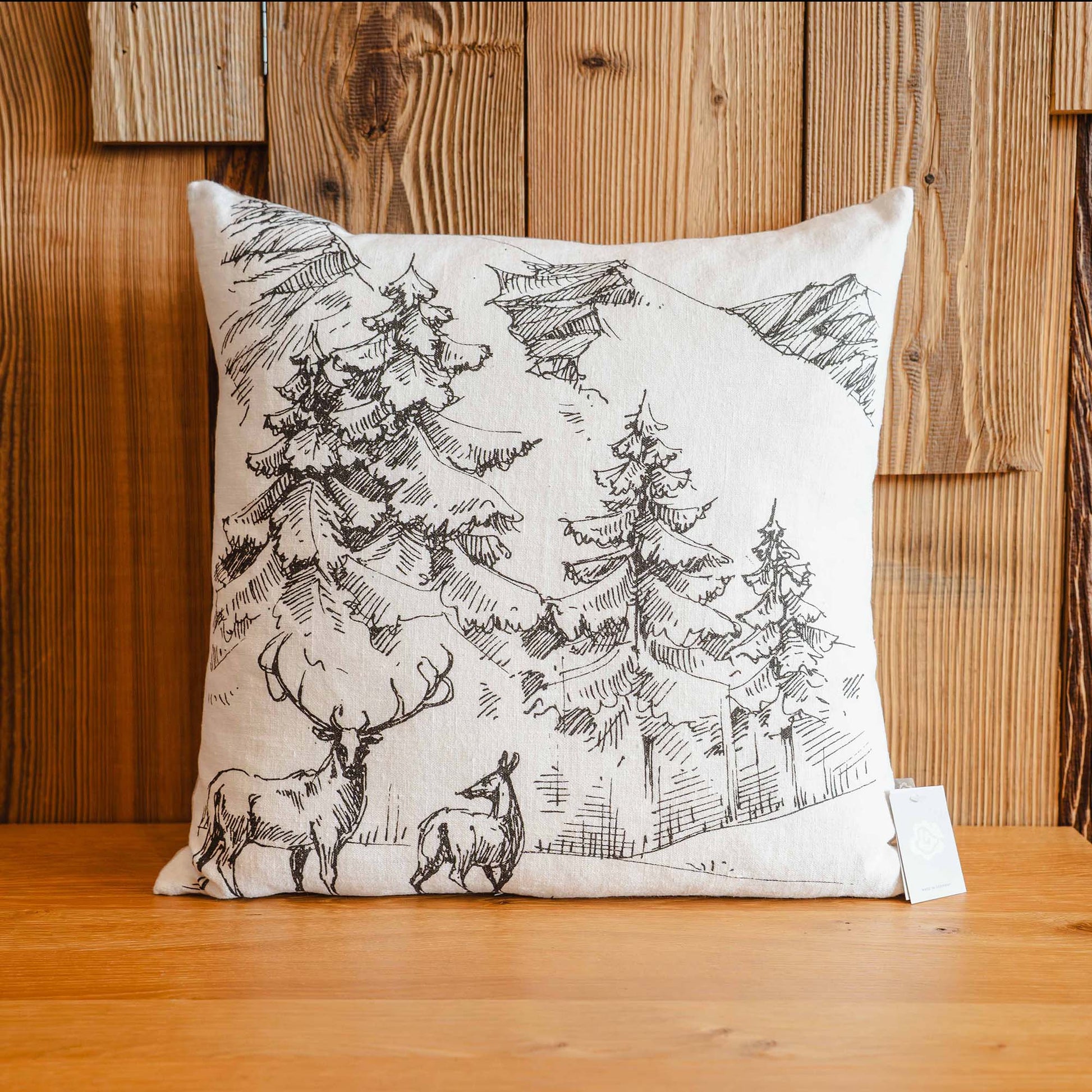 Weiches Leinenkissen mit Charakter: Die weiße Vorderseite schmücken handgefertigte Siebdruckmotive, während die Rückseite in natürlichem Leinenbeige schlicht elegant bleibt. Die Federfüllung lässt sich herausnehmen – perfekt zum Waschen oder für individuelle Anpassungen. Ein Stück Handwerk für dein Zuhause.