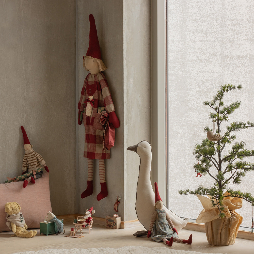 Dieser Pixy-Junge in Größe 3 trägt Hose und Strickpullover und ist Teil der Pixy-Kollektion von Maileg, die inzwischen zu einem echten Klassiker geworden ist. Erhältlich sind die Pixys in verschiedenen Größen und Stilen.