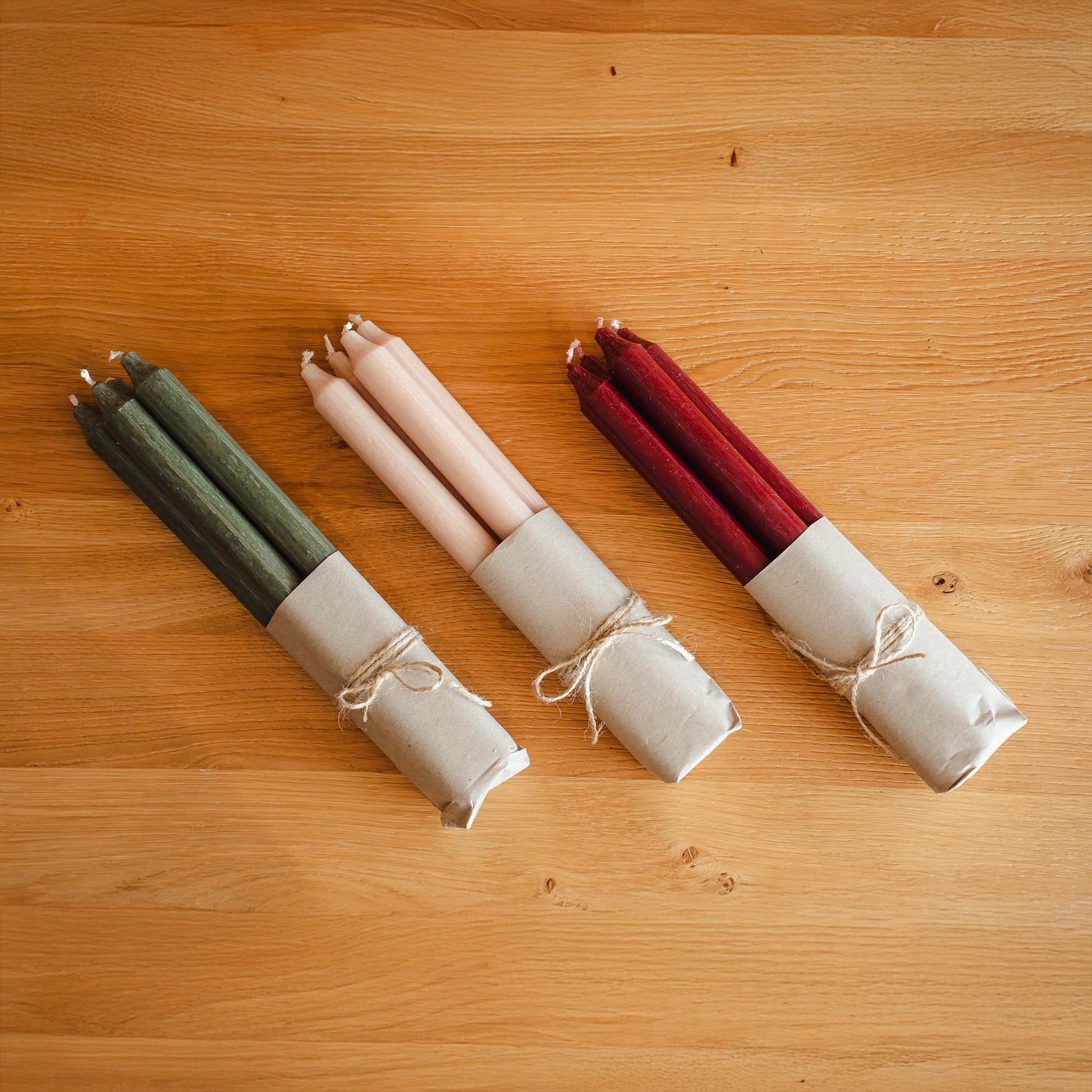 Vier rustikale Stabkerzen, die mit ihrer einzigartigen Textur und den wunderschönen Farben begeistern. Jede Kerze verbindet elegante Schlichtheit mit charmanter Handwerklichkeit – perfekt für gemütliche Momente und stilvolle Raumgestaltung. Hochwertig in der EU gefertigt, bringen diese Kerzen Wärme und Charakter in jedes Zuhause.