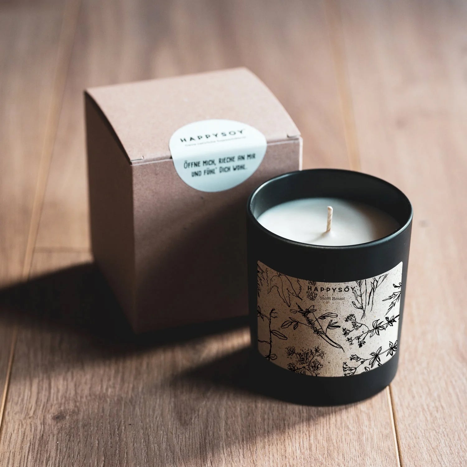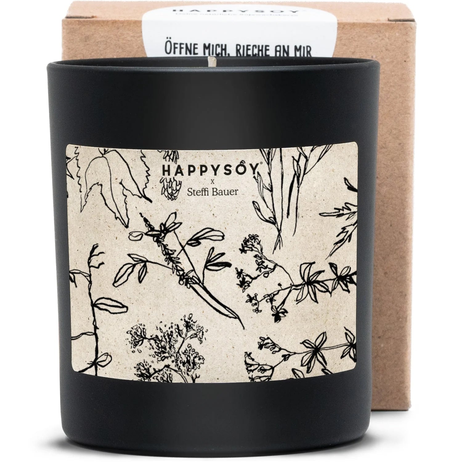Vegane Duftkerze von Happysoy in einem stilvollen, matten, wiederverwendbaren Glas. Das Glas ist mit einem besonderen Graspapieretikett versehen, das nicht nur nachhaltig ist, sondern auch eine inspirierende Botschaft trägt. Mit Liebe handgemacht aus 100% natürlichem Sojawachs - eine erneuerbare, nachwachsende und natürliche Alternative zu traditionellem Paraffin. Der Duft erinnert an eine Blumenwiese reich an Lilie, Iris und Jasmin (blumig-fruchtig). Er öffnet das Herz und erfüllt dein Zuhause mit einer wohligen Note, die beim Entspannen unterstützt und zugleich leicht erfrischend riecht. Frei von Zusätzen und plastikfrei in Recyclingkarton verpackt.