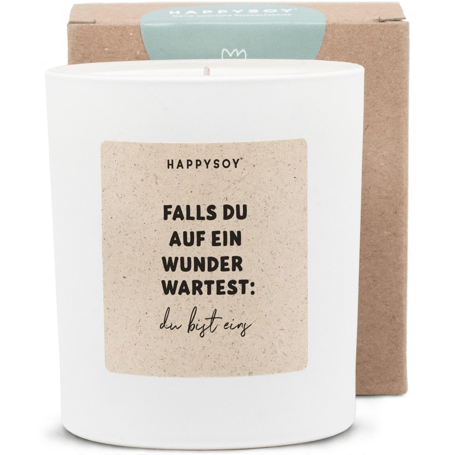 Vegane Duftkerze von Happysoy in einem stilvollen, matten, wiederverwendbaren Glas. Das Glas ist mit einem besonderen Graspapieretikett versehen, das nicht nur nachhaltig ist, sondern auch eine inspirierende Botschaft trägt. Mit Liebe handgemacht aus 100% natürlichem Sojawachs - eine erneuerbare, nachwachsende und natürliche Alternative zu traditionellem Paraffin. Der Duft erinnert an eine Blumenwiese reich an Lilie, Iris und Jasmin (blumig-fruchtig). Er öffnet das Herz und erfüllt dein Zuhause mit einer wohligen Note, die beim Entspannen unterstützt und zugleich leicht erfrischend riecht. Frei von Zusätzen und plastikfrei in Recyclingkarton verpackt.