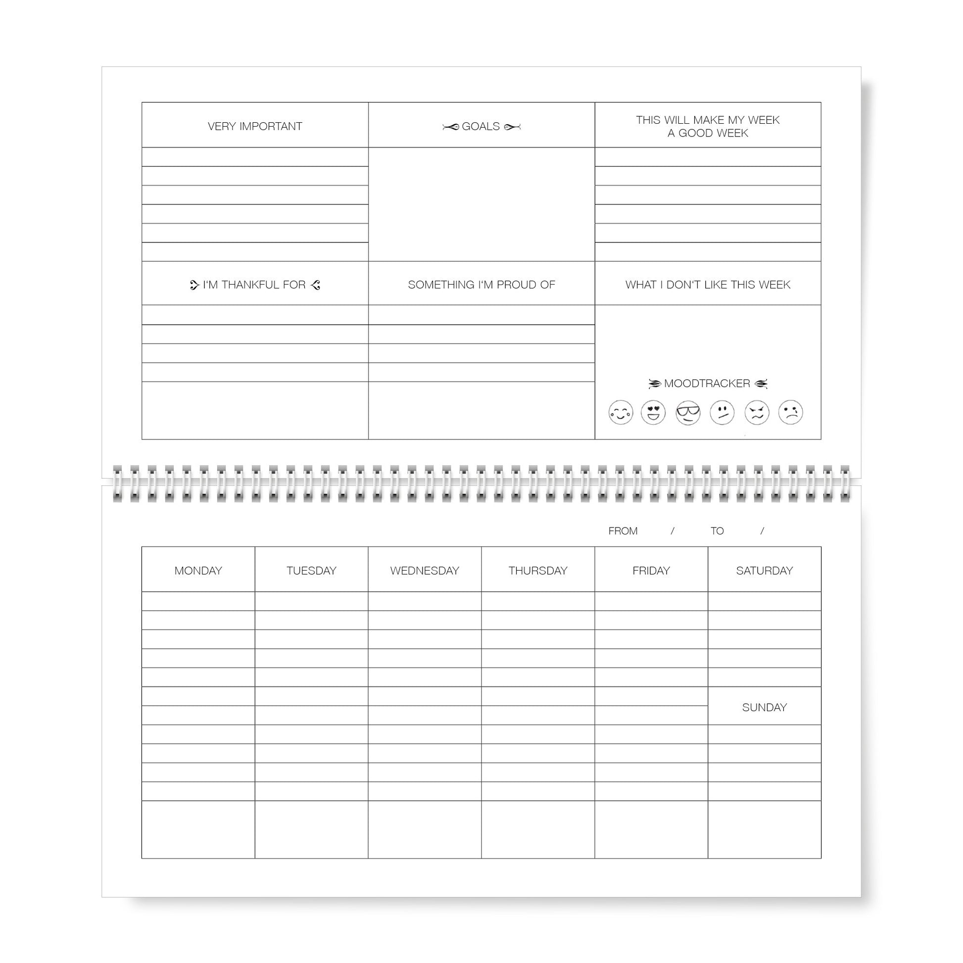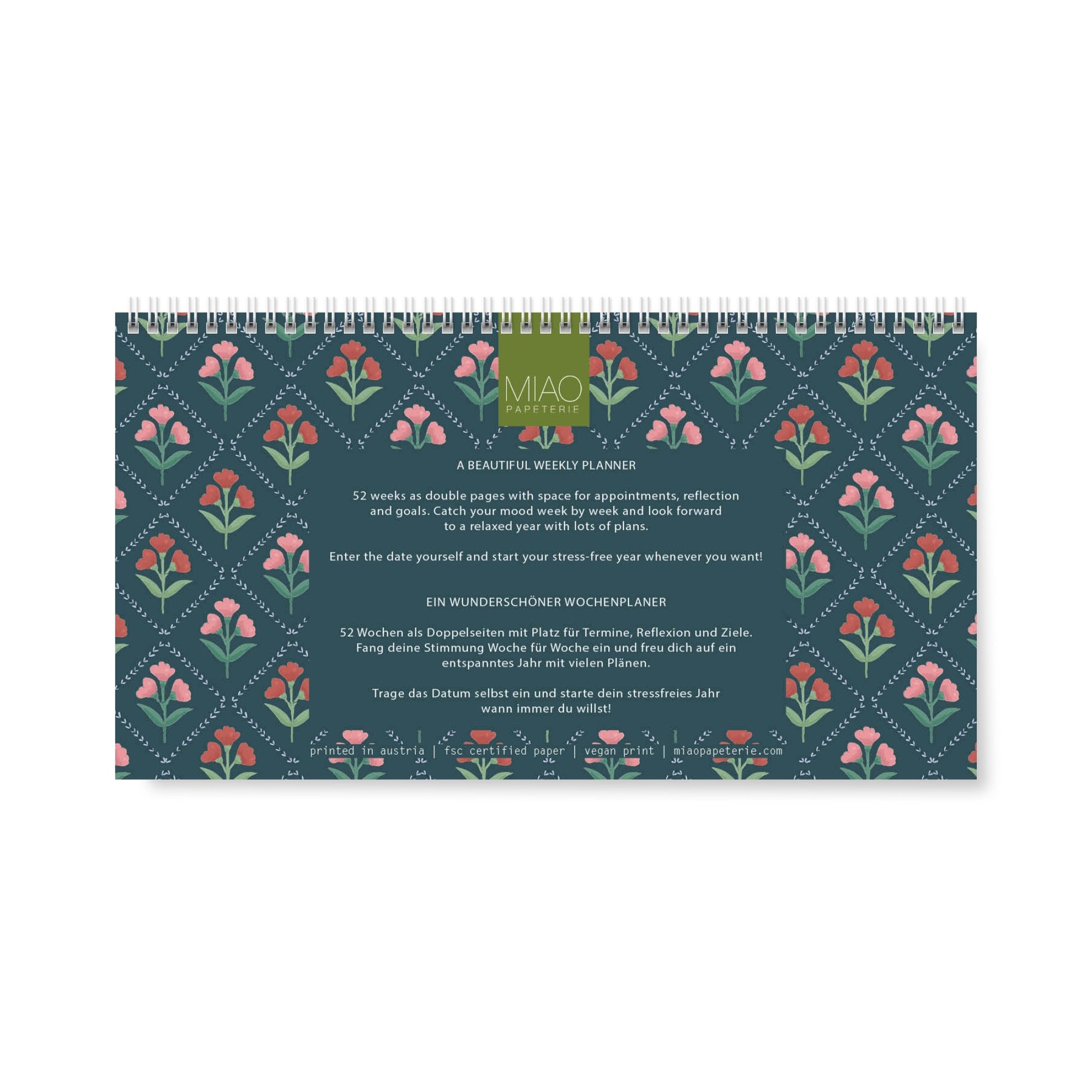Der Wochenplaner „Darkpattern“ von MIAO Papeterie bietet auf 106 Seiten viel Platz für deine Termine. Das Cover ist farbenfroh auf stabilem 300g-Papier gestaltet, innen findest du edles schwarz bedrucktes Munken Premium auf 100g. Mit praktischer Spiralbindung und der handlichen Größe von 24x13 cm begleitet er dich stylisch durch die Woche. Liebevoll in Österreich illustriert und in Südtirol auf FSC-zertifiziertem Papier gedruckt – so macht Planen gleich doppelt Spaß!